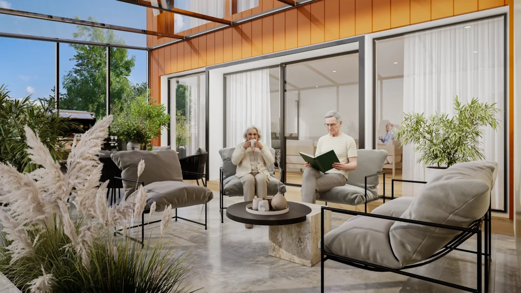 Felles Hagestue: I tilknytning til inngangspartiet etableres en lys og innbydende hagestue – en naturlig forlengelse av Koperviks samlingskultur, ideell for sosiale sammenkomster.